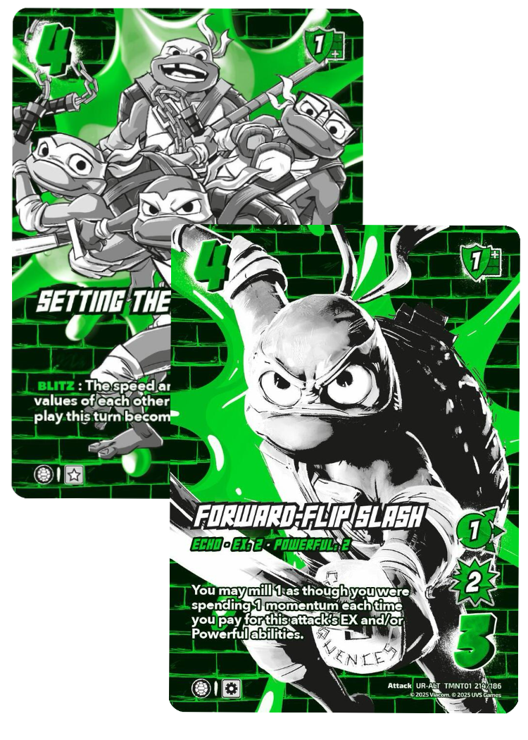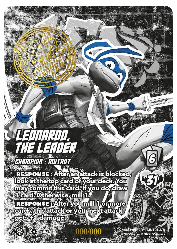 Hello and welcome back to Undefeated at Locals! This week I played Leonardo, The Leader on the All symbol in my quest to play every TMNT character in Universus. Like all three of his brothers, Leo is an incredibly fun character design, I always enjoy self-mill for value decks and having the ability to pick up the right card offensively or defensively is really interesting. Where he suffers is not having a good symbol like Fire for this effect. Due to that, I think he is probably the “weakest” of the four brothers but still very entertaining to play.