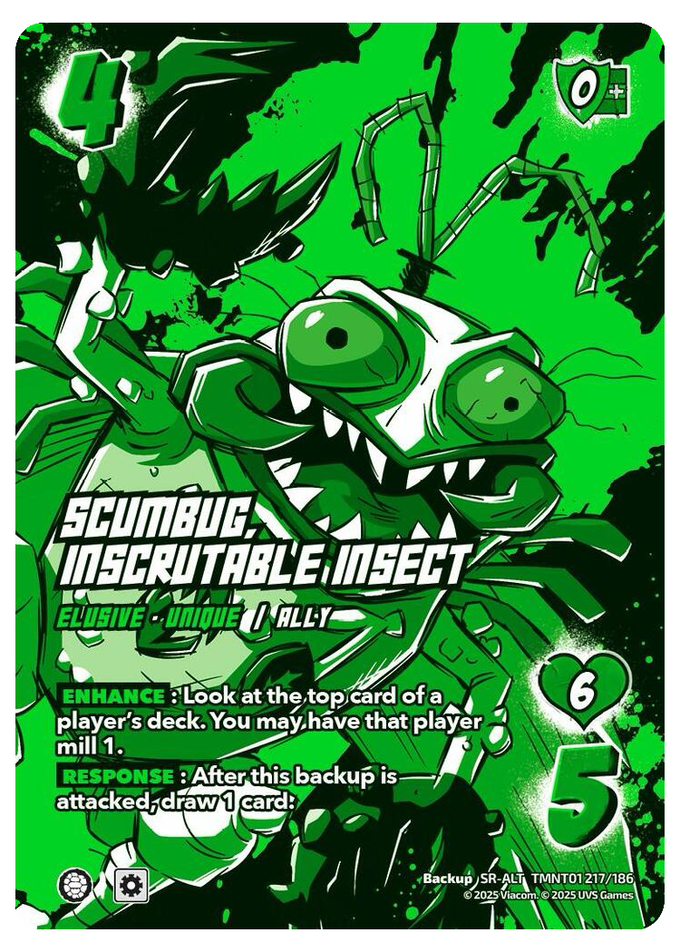 I built this deck with the intention of using the good Void defensive pieces to survive while forcing my opponents to mill while using some of the Lurker’s review-centric kit to my advantage, since more often than not the card they mill will have us reviewing a card to draw. Like a lot of decks of this type, this one struggled to find enough damage to close out games as most of my attacks were being sent for printed stats. With most of the Ally attacks being relatively low stats this was a struggle. Mutant Mashup, Lurkers Strike, and April’s Investigation were all very cool but unfortunately the best attack in the deck was Sweeping Daggers which is the only non-Ally attack in the deck. Scum Bug was absolutely insane when I saw it and I would honestly up it to a 4 of if I ever play April again.