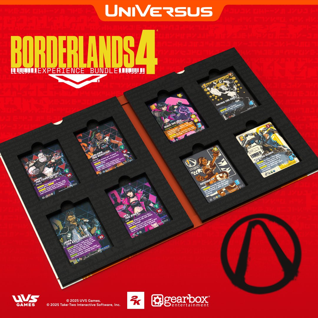 Next up, and last up so far, is the Borderlands 4 Experience Bundle. I was extremely excited about this announcement, Borderlands is one of my favorite video game series of all time, so much so that I have a Vault Symbol tattoo on one of my fingers. This was ORIGINALLY announced to be 1 copy each of four more reskinned characters representing each of the Vault Hunters from the newest game, as well as four copies each of four other reskinned cards all packed in a “Collectors Case” for display for the great price of $39.99. The reskinned non character cards that were chosen were in my opinion, some of the best cards they could have picked, they were all originally in the YuYu Hakusho Dark Tournament set which has become a very hard set to get ahold of, and the cards were a mix of very sought after rare cards in Walk The Dog and Weapon Clash, and played commons in Paying The Cost and Resting Up. Four Walk the Dog for forty bucks sounds way too good to be true…. Well, it turns out it was. Due to what was announced as a mistake somewhere in the packaging process these would end up arriving with only one of each character AND non-character card. This was a huge problem, and it upset a lot of people.